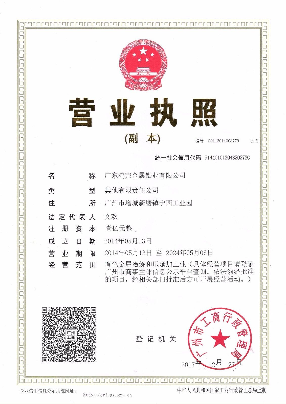 廣東鴻邦金屬鋁業(yè)有限公司成立于2014年5月,是一家由廣州工業(yè)投資控股集團有限公司、華勁集…